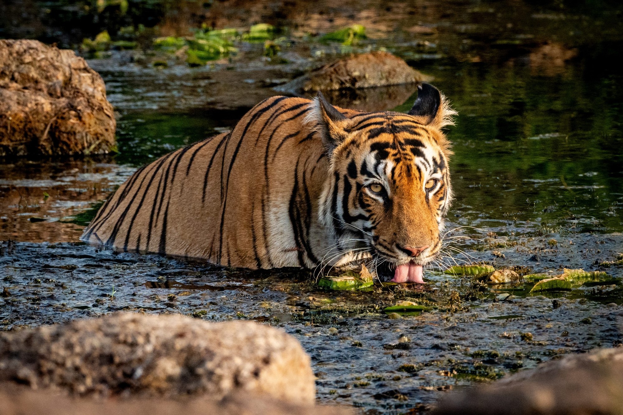 Ranthambore in Rajasthan ist einer der bekanntesten Tigerparks Indiens — mit Dschungel, Seen und einer historischen Festung, die über dem Park thront. Die Chancen, hier einen Bengalischen Tiger zu sehen, sind besonders gut.