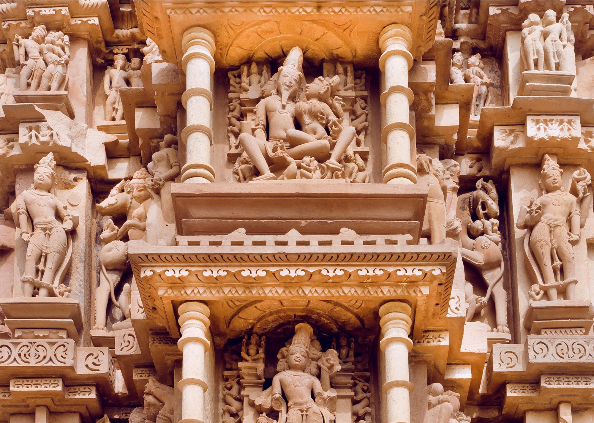 Der Vormittag gehört den Tempeln von Khajuraho. Allen voran beeindruckt der Kandariya Mahadeva als Höhepunkt der westlichen Gruppe: Hunderte in Stein gemeißelte Figuren erzählen von Göttern und Dämonen, von Musik und Tanz, von Liebe und Erotik. Selbst nach einem Jahrtausend lässt sich an jedem Detail ablesen, mit welcher Sorgfalt die Chandela-Dynastie hier arbeiten ließ. Die berühmten erotischen Darstellungen machen nur einen kleinen Teil des Ensembles aus, und doch sind es gerade sie, die den Tempeln ihren weltweiten Ruf eingebracht haben.
