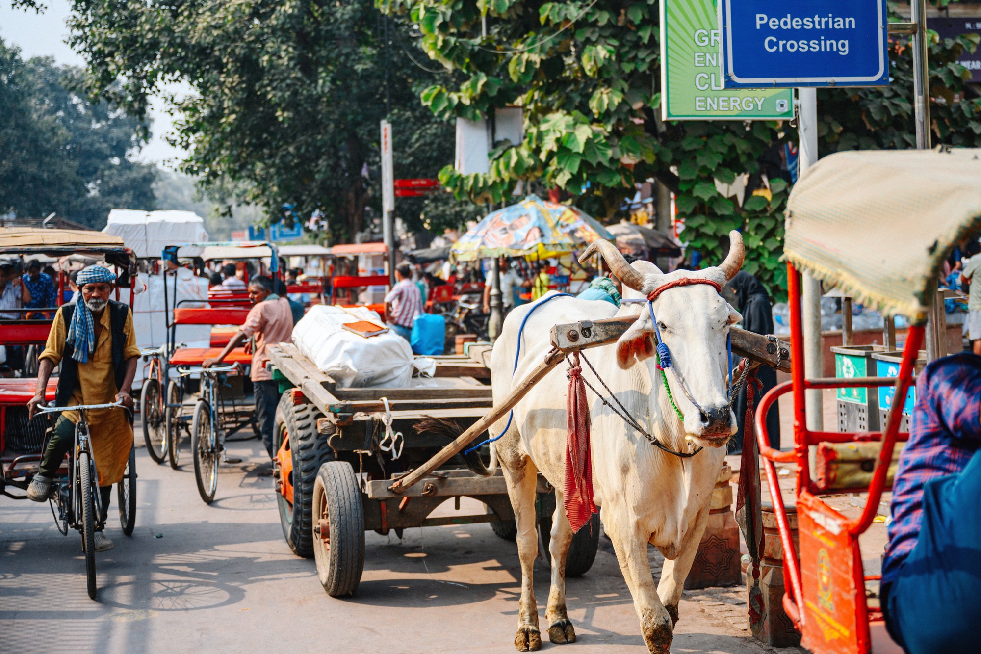 Am Morgen verlassen Sie Delhi in Richtung Süden. Ziel ist Agra am Ufer der Yamuna, einst die prächtige Hauptstadt des Mogulreichs. Die Landschaft öffnet sich allmählich: Die Vororte weichen einer weiten Ebene mit Weizen- und Senffeldern, dazwischen kleine Dörfer, in denen das Leben spürbar langsamer verläuft als in der Hauptstadt.